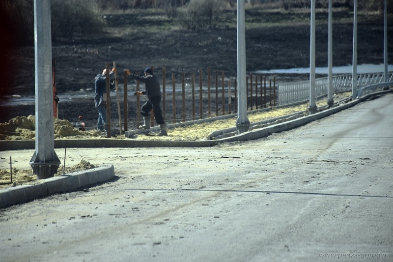 Сейчас рабочие производят установку барьерных конструкций и бордюрного камня, монтируют перила по всей протяженности тротуара с той стороны, где откос насыпи превышает 2,5 метра. На следующей неделе начнется покрытие тротуара и верхнего слоя проезжей части. Ожидается поставка остановочных павильонов. Проект завершат работы по благоустройству.