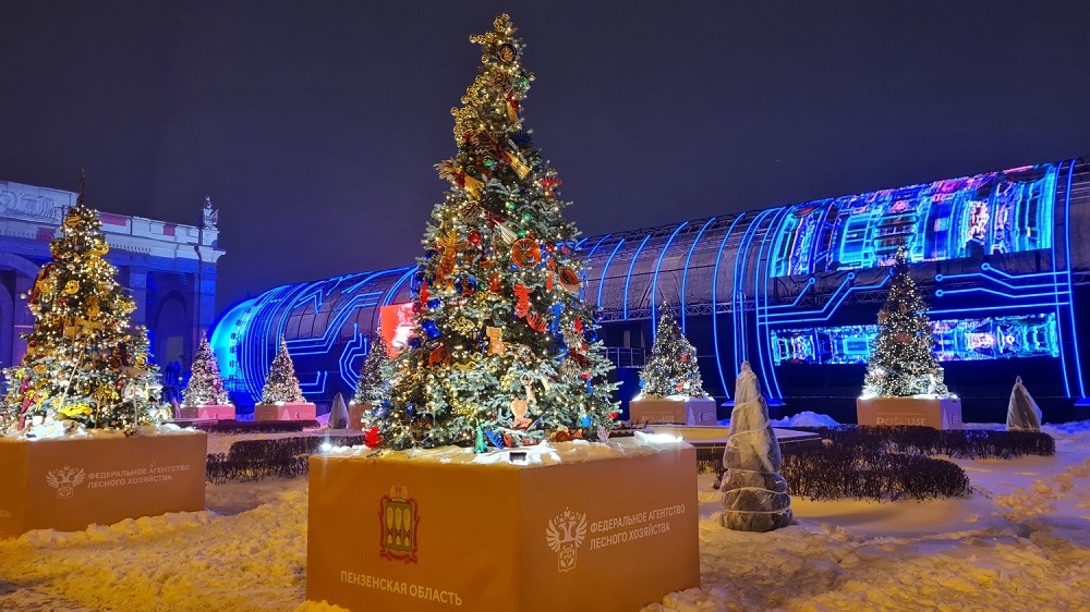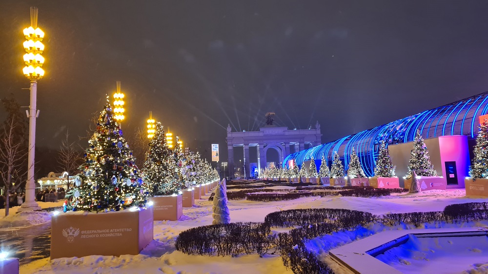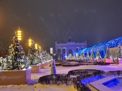 1 декабря на выставке «Россия», которая проходит на ВДНХ, зажглись 360 000 огней на елях, украшенных в стилистике народных художественных промыслов всех 89 регионов страны.