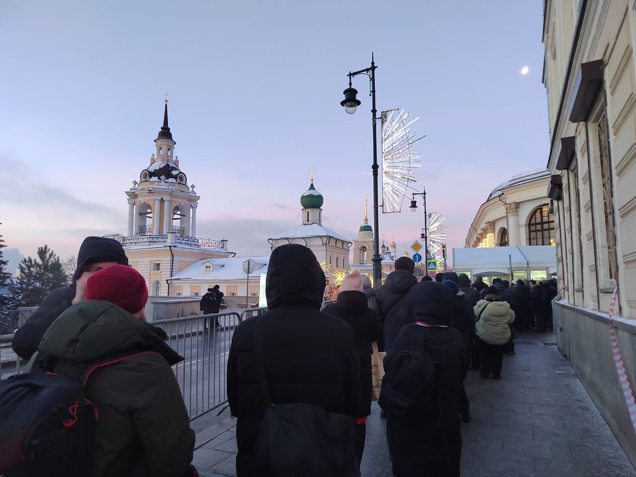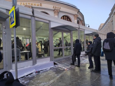 Чтобы попасть на ежегодную пресс-конференцию Владимира Путина и занять лучшие места, журналистам пришлось проявить немалую стойкость. Проходная была организована у входа в Гостиный двор, где развернули временный пункт проверки и досмотра. Своей очереди журналисты дожидались на улице, многие провели в ней несколько часов.