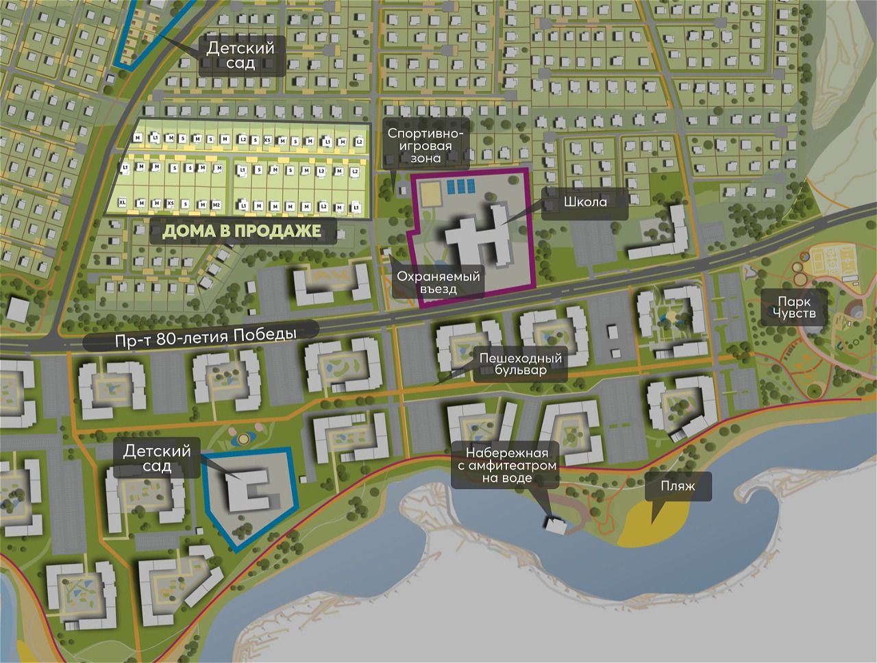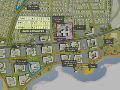 Там заложили детский сад на 100 мест в шаговой доступности от квартала коттеджей, садик на 200 мест рядом с кварталом домов средней этажности и школу вместимостью 550 учеников, оснащенную современным оборудованием. Все это в охраняемых кварталах, а значит, родители будут спокойны за своих детей.