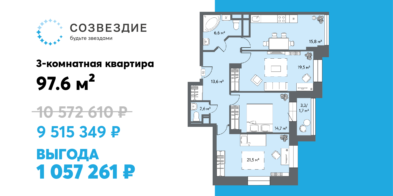 Больше одного миллиона рублей! Такую выгоду можно извлечь из покупки квартиры в топовом жилом комплексе «Созвездие» на неделе с 20 по 26 октября 2025 года. Новая цена действует всего семь дней в рамках акции «Время выгодных решений».
