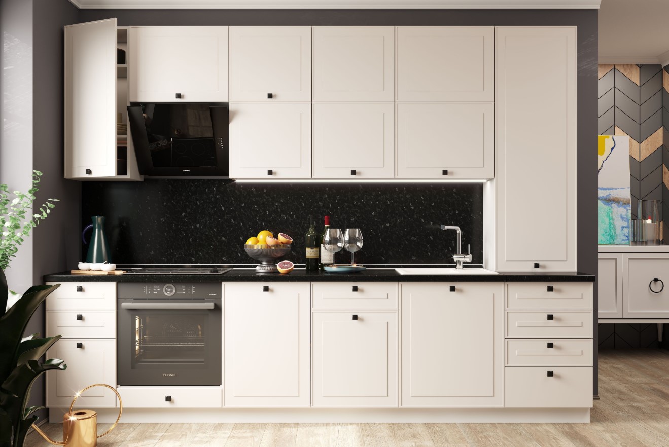 В первую очередь обратите внимание на производителя: компания, которая дорожит своей репутацией, одинаково хорошо делает как кухни на заказ, так и модульные модели. SURA уже более 15 лет занимается изготовлением кухонь на собственном производстве — вам не придется переплачивать за работу посредников.