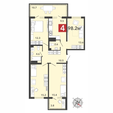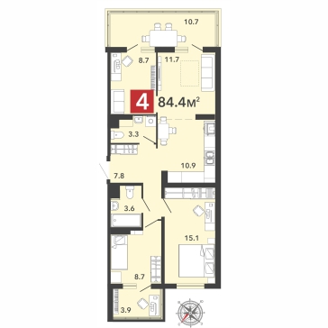 В 70-м строении разработаны два типа планировок для большой семьи. Одни – для тех, кто любит собираться вместе по вечерам в просторной кухне-гостиной, другие – для тех, где все члены семьи ценят личное пространство. Хотя во втором случае кухня тоже остается достаточно просторной – 9,5 кв. м. При этом на лоджии будет теплый пол, а значит, ее можно смело использовать как столовую.