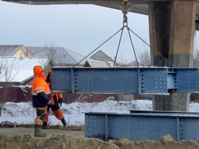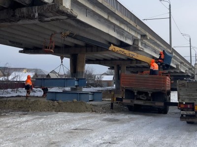 Подрядная организация уже подготовила площадку для проведения работ, выполнив отсыпку щебнем и заливку бетоном. Сейчас идет установка металлоконструкции, которая обеспечит дополнительную устойчивость путепровода и повысит его безопасность.