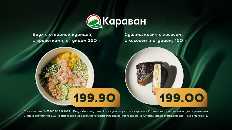 Боулы сети "Каравана – для тех, кто хочет быть в тренде современных гастрономических тенденций и наслаждаться вкусной, полезной и оригинальной едой. Заказать доставку домой или на работу можно через сервис "Торнадо". При заказе онлайн действует акция: покупай три, плати за два!