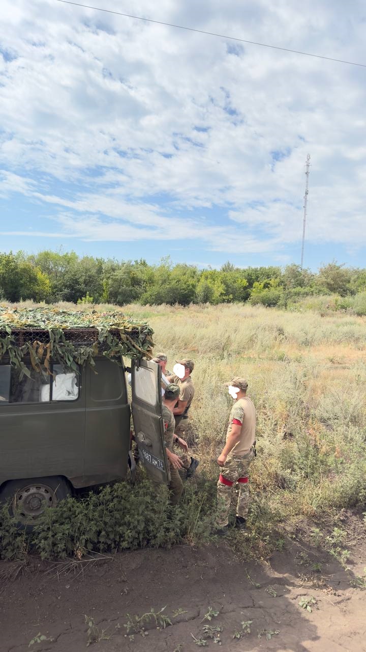 Херсон поджигают. Враги не могут проникнуть в блиндаж, но могут жечь сухую траву, которая выгорела в плюс 40. Бойцам передали огнетушители и устройства, позволяющее перекачивать воду насосом – тоже для противопожарной безопасности. Привезли пензенцам лодку. Тут острова, Днепр. Часть задач приходится выполнять на воде.