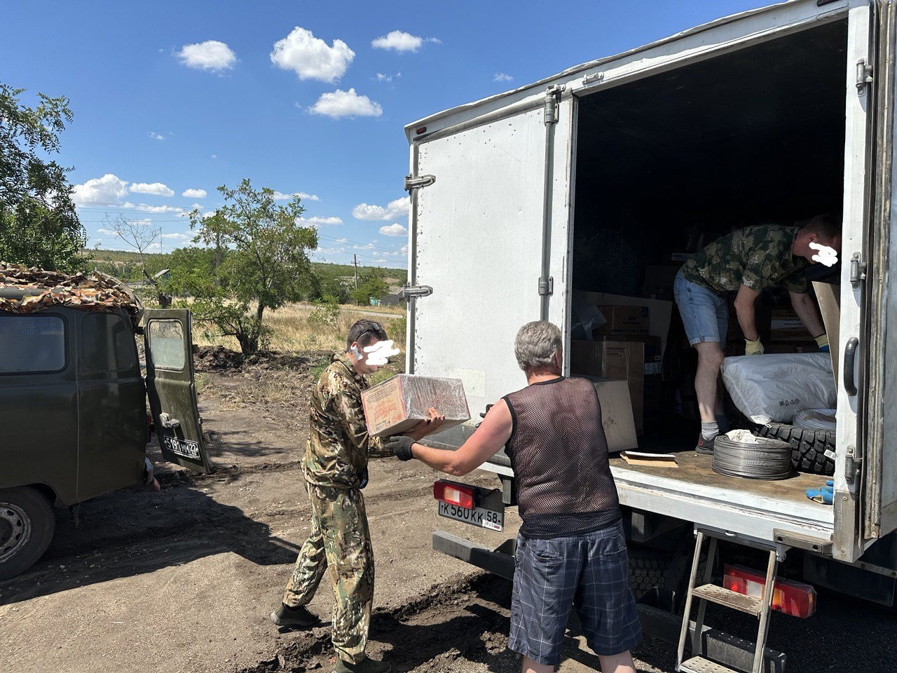 Погрузка, как всегда, проходила на территории предприятия. ГАЗон, рассчитанный на 5 тонн, забили под завязку, да так, что просели рессоры. Забегая вперед, скажем, что и участники гуманитарной миссии, и ГАЗон выдержали. Каждая поездка – риск. Об этом много раз говорил президент РФ Владимир Путин: волонтеры рискуют своим здоровьем и жизнью.