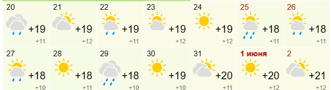 По прогнозам синоптиков, теплеть начнет с 20-х чисел мая. Текущая и следующая недели еще будут прохладными и дождливыми. 9 и 10 мая возможны ночные заморозки. Градусник покажет от +12 до +18 градусов.