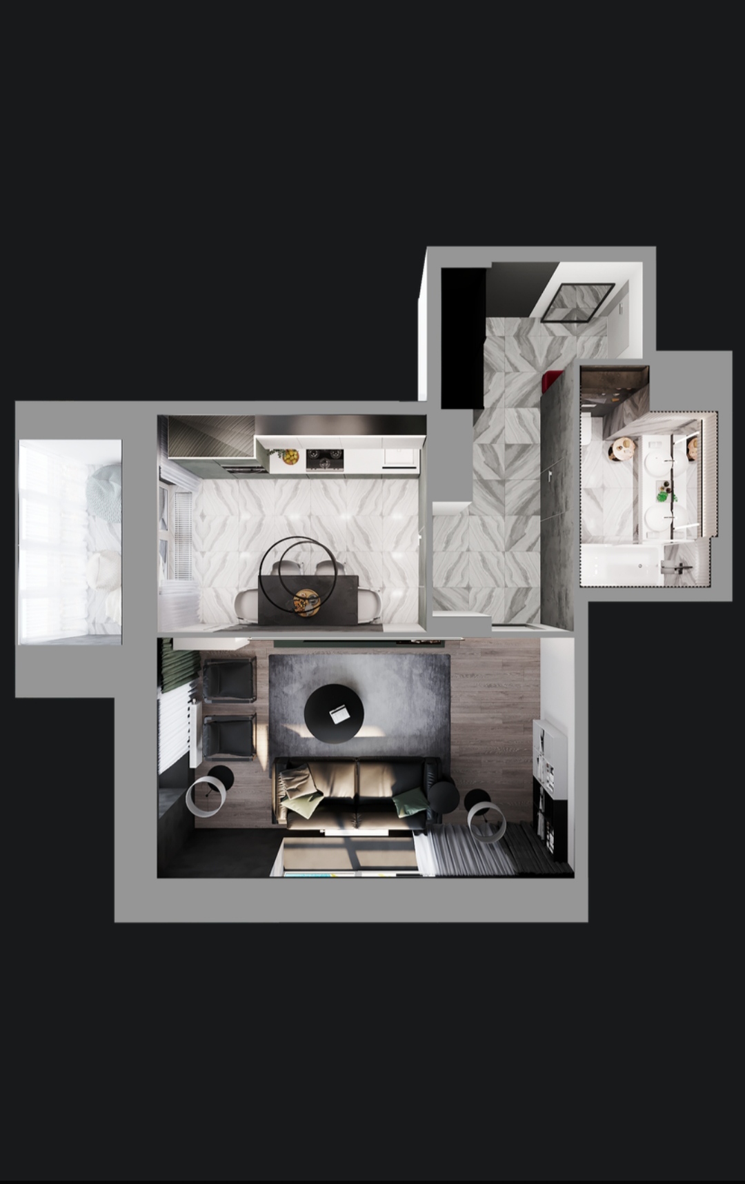 Квартира расположена на 5-м этаже, в ней кухня с выходом на лоджию, светлая комната с двумя окнами и функциональный коридор, в котором будет удобно разместить системы хранения.