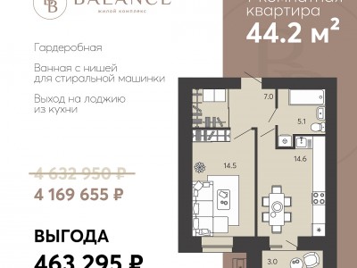 С 9 по 15 июня снижаем цену на 1-комнатную в сданном доме ЖК «Баланс».