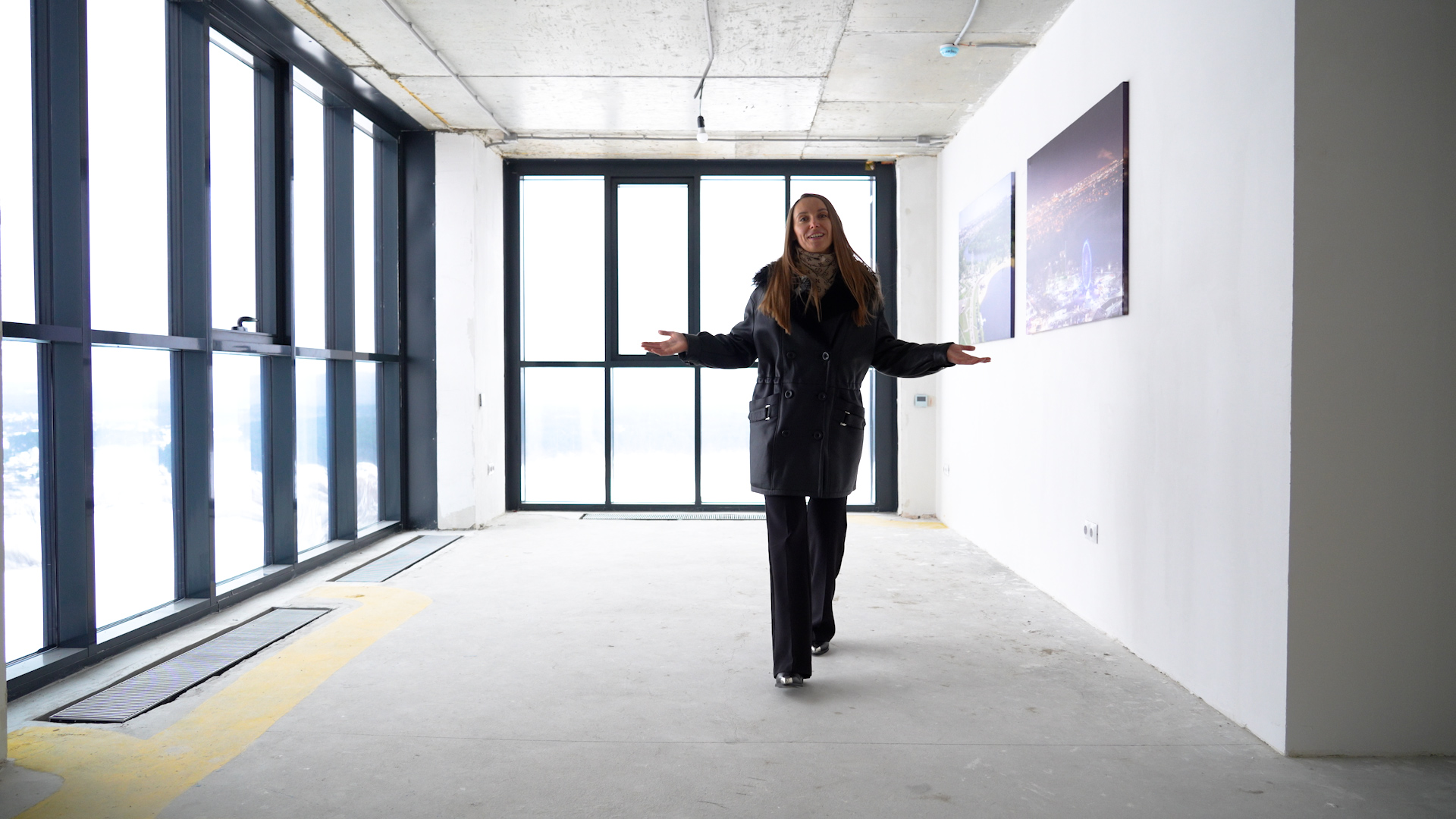 Особенность, которая не останется незамеченной — квартиры видовые. Сквозь стеклянные стены открываются потрясающие виды на Город Спутник и его живописные окрестности.