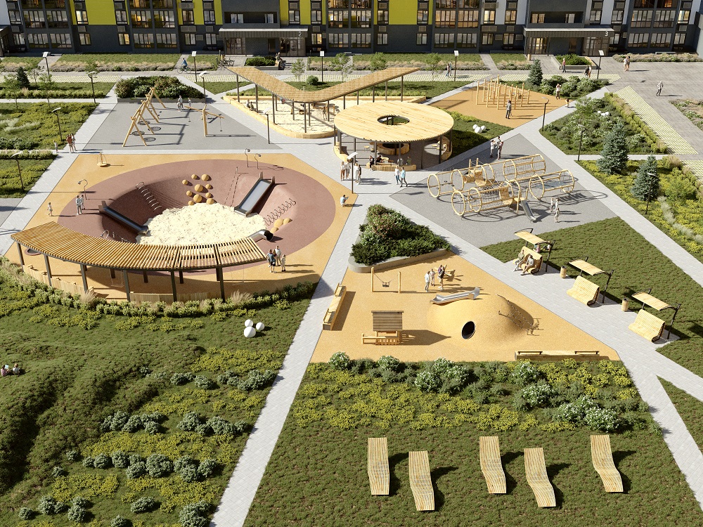 «Радужные дворы» – целый квартал для яркой жизни. Тихие дворы без машин, беседки, зоны пикника, экологичные игровые площадки – здесь комфортно жить и интересно отдыхать. Для каждого двора застройщик разработал проект озеленения.