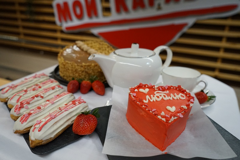 Вы можете проявить фантазию и заказать индивидуальное украшение торта. Если же решение нужно «здесь и сейчас», на витринах «Каравана» вас уже ждут готовые бенто в форме сердца или классические круглые торты с трогательными надписями о любви.