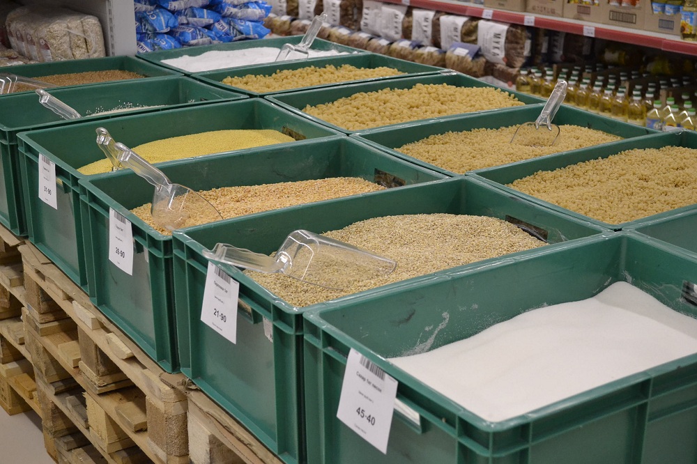Крупы, макароны и сахар, можно купить на развес. Отсутствие упаковки и система самообслуживания сказываются на цене - товары реализуют с минимальной торговой наценкой.