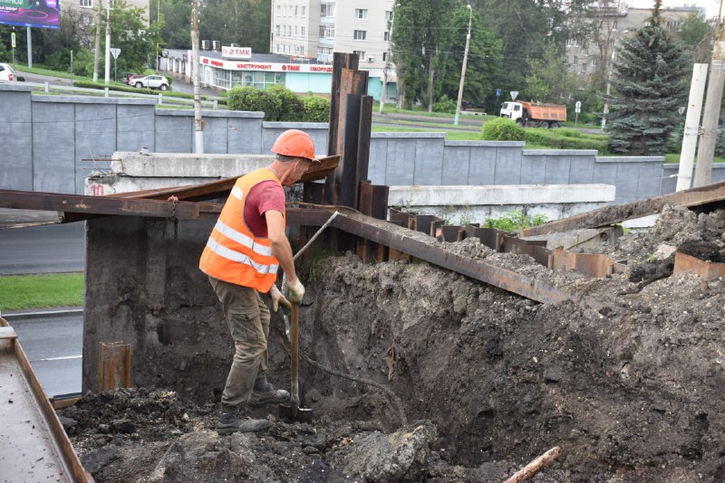 На данный момент демонтирована старая плита и завершены все аварийно-восстановительные мероприятия. Подрядчик приступил к сборке опалубки и усилению несущих конструкций арматурой для повышения прочности сооружения. Следующим этапом станет заливка новой подпорной плиты.