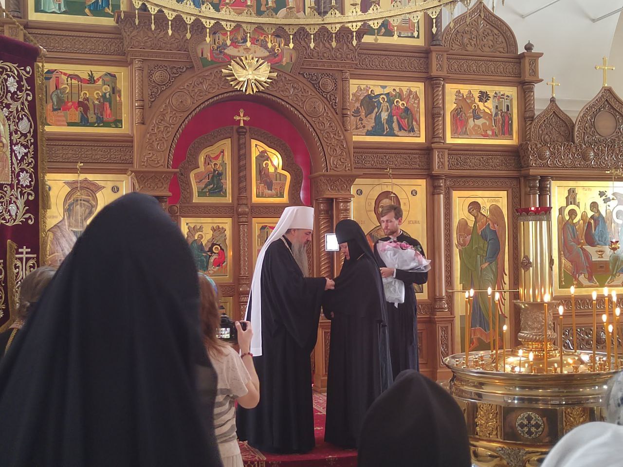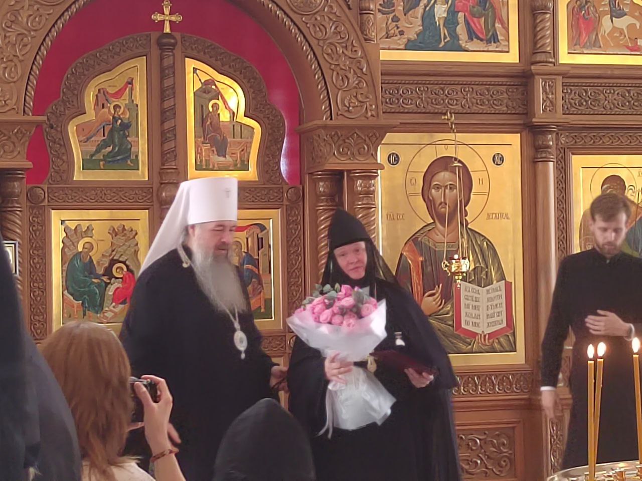 В завершение владыка поздравил настоятельницу монастыря матушку Александру с юбилеем: «Ровно 10 лет назад именно в этом соборе, по благословению Святейшего Патриарха Кирилла и Священного Синода, была представлена новая игуменья монастыря – матушка Александра. Время летит быстро – десять лет это уже солидный срок. За это время многое было сделано: преображение монастыря, его развитие и изменения. Все это происходило под ее руководством».
