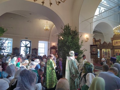 После литургии был совершен Крестный ход, затем митрополит Серафим совершил великую вечерню праздника Пятидесятницы с чтением коленопреклоненных молитв.