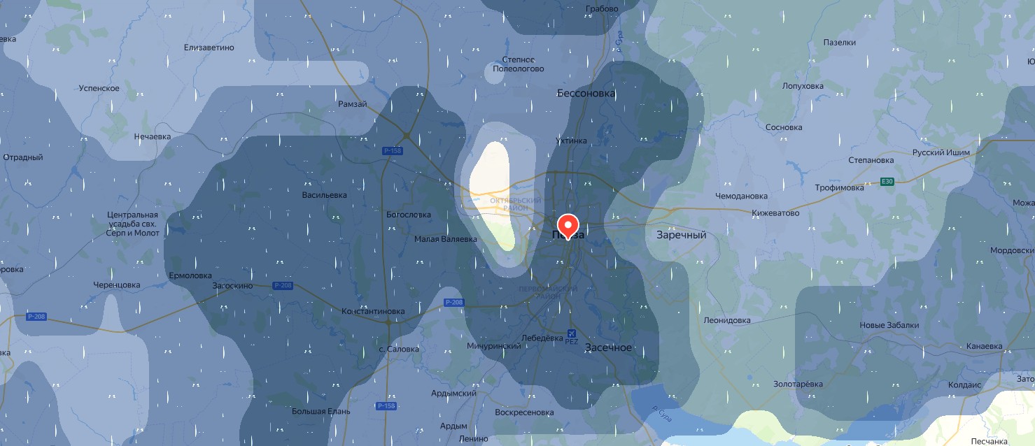 Это ненастье не стало неожиданностью: ГУ МЧС России по Пензенской области ранее предупреждало жителей региона о возможной грозе и сильных осадках в этот день. Прогнозы синоптиков, судя по всему, оправдались. Карты осадков показывают, что ливень продлится до самого вечера и затронет большую часть Пензенской области.