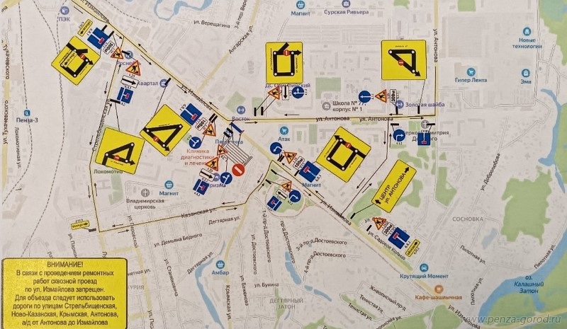 "В период с 21.05.2024 (до окончания строительных работ) участок ул. Измайлова от пересечения с ул. Антонова до пересечения с ул. Казанская будет закрыт для движения транспортных средств. На период закрытия данного участка для движения транспортных средств путь следования автобусов городских маршрутов № 93 «Совхоз-Техникум - Аграрный университет», № 99 «Арбековская Застава – Засурье» с ул. Измайлова будет направлен по ул.Стрельбищенской, Казанской, Крымской, Измайлова и далее по маршруту в обоих направлениях", - сообщили в пресс-службе ГКУ Организатор перевозок Пензенской области.