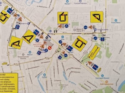 *  Дорога у новой школы, соединяющая улицы Антонова и Измайлова (при выезде на улицу Антонова разрешен только правый поворот).