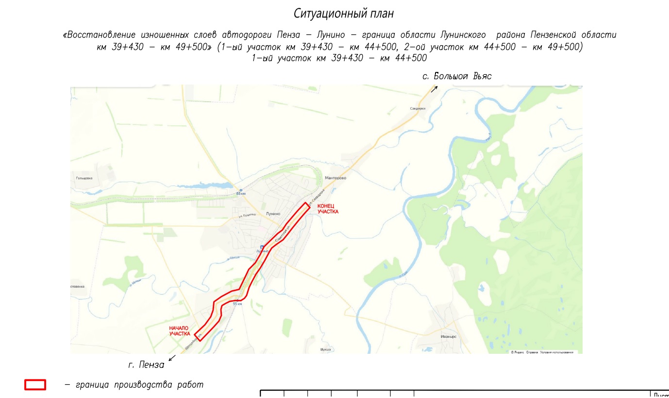 В Единой информационной системе в сфере закупок опубликован крупный аукцион: на восстановление изношенных слоев автодороги Пенза – Лунино – граница области выделяется 330 055 022,96 рублей из бюджета Пензенской области. Работы охватят сразу два участка дороги: с 39-го по 49-й километр.