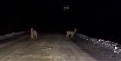 Животные в вечернее время находились на проезжей части. Одна из косуль быстро убежала. Вторая – покинула проезжую часть не спеша. А третья дорогу переходить не торопилась. Она словно осматривала окрестности и подъехавшую машину. Только после этого последняя косуля последовала за своими спутницами.