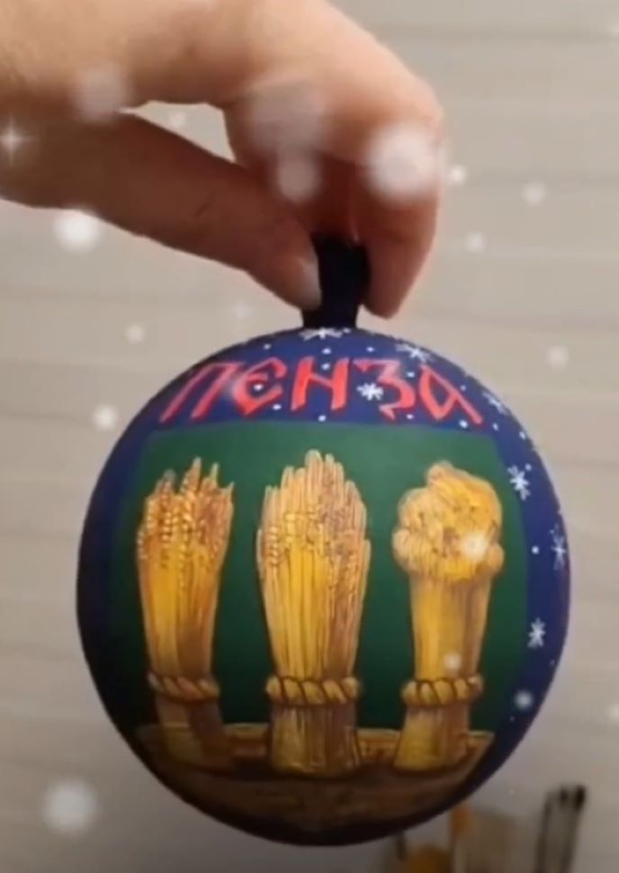 Автором праздничного украшения стала преподаватель Пензенского художественного училища им. К.А. Савицкого и Детской художественной школы № 1 им. В.Е. Татлина Екатерина Громова. Именно ее работа – новогодний шар с элементами символики региона – была выбрана для представления Пензенской области в столице.