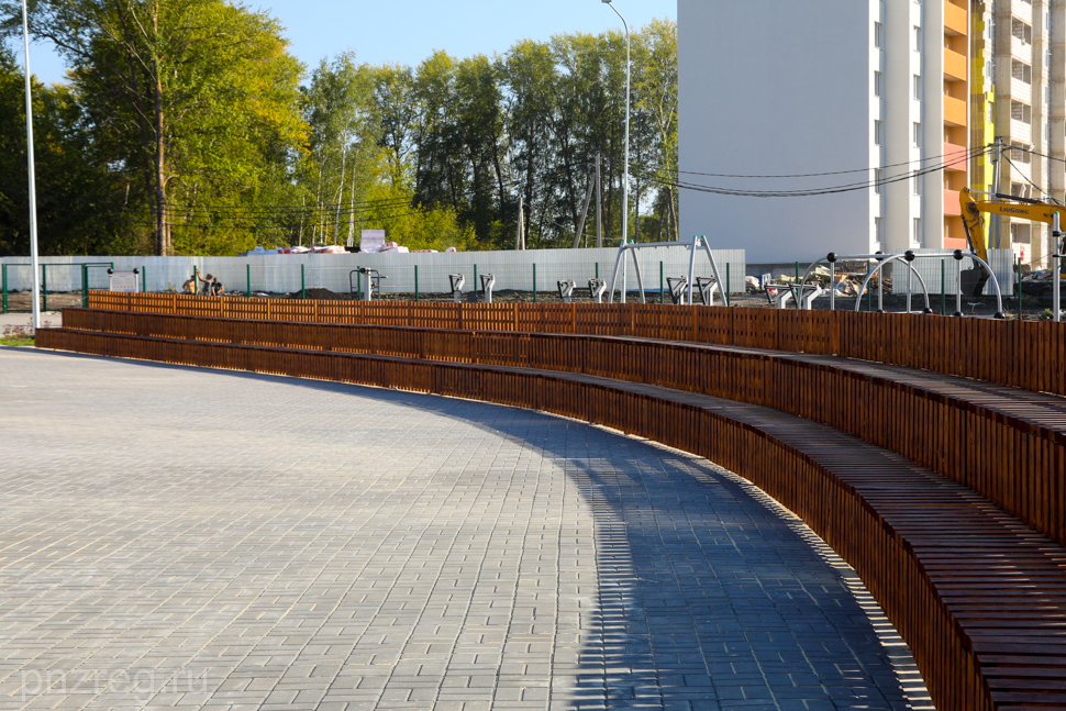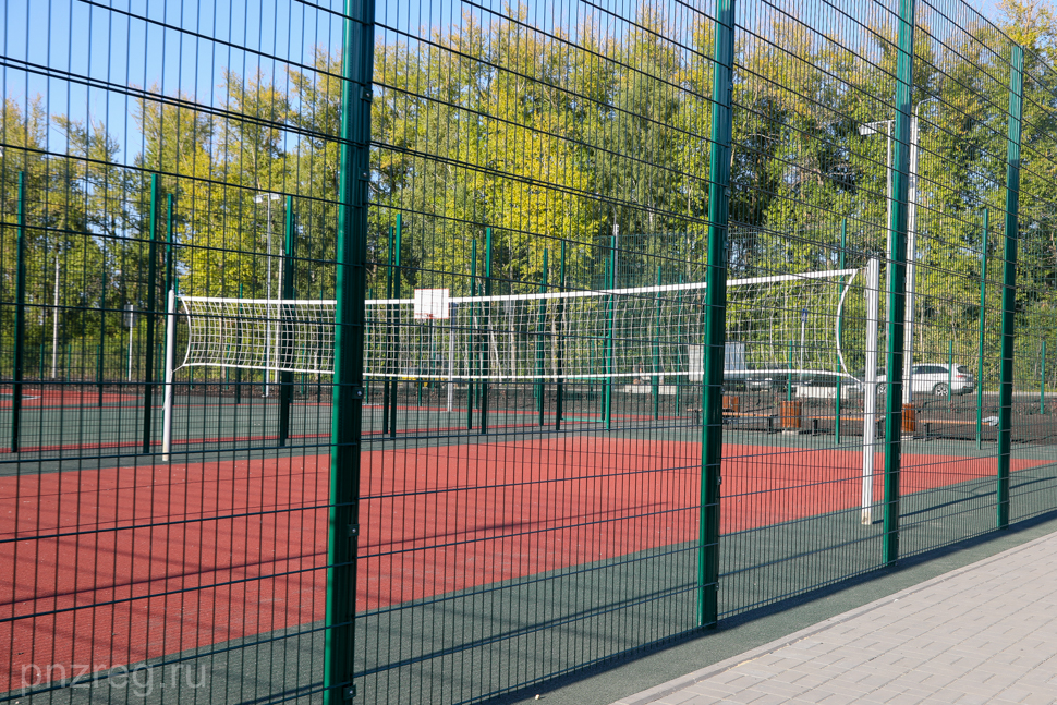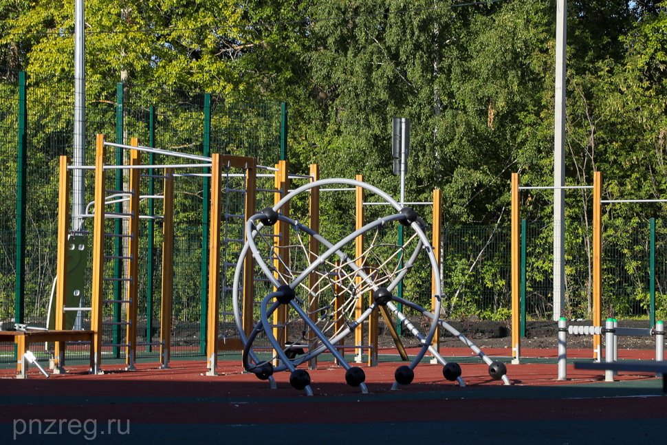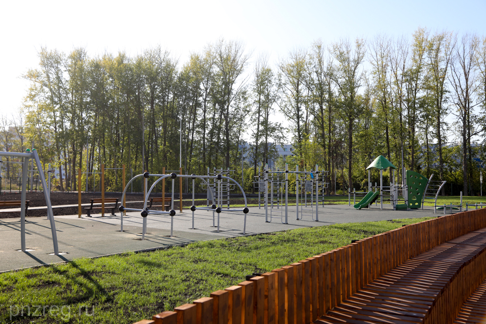 На территории расположены футбольное поле с беговыми дорожками, площадки для волейбола и баскетбола, детские игровые площадки и уличные тренажеры.