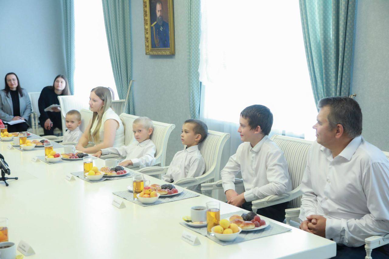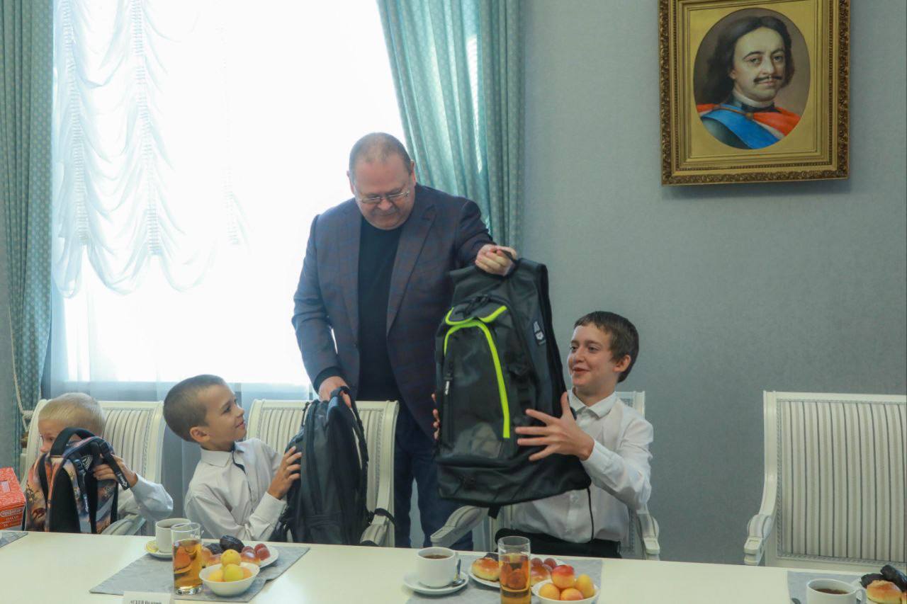 Настоящим героем встречи стал шестилетний Иван, который в этом году впервые пойдет в школу. Губернатор вручил будущему первокласснику рюкзак с канцтоварами в рамках акции «Собери ребенка в школу». Такие же подарки получили и его братья – Алексей и Валерий, которые уже учатся. Старшая сестра Даша – студентка – тоже получила внимание и поддержку. Для малышей подготовили игрушки, а старшим ребятам подарили спортивную экипировку.