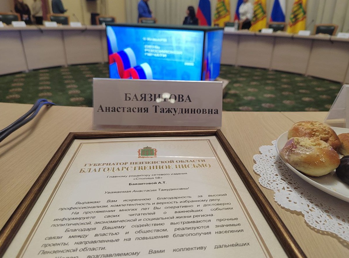 Особое внимание на встрече уделили личным достижениям руководителей ведущих СМИ. Губернатор вручил благодарственное письмо главному редактору сетевого издания «Столица 58» Анастасии Баязитовой.