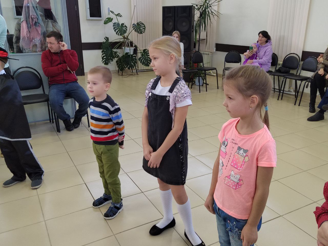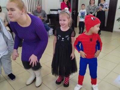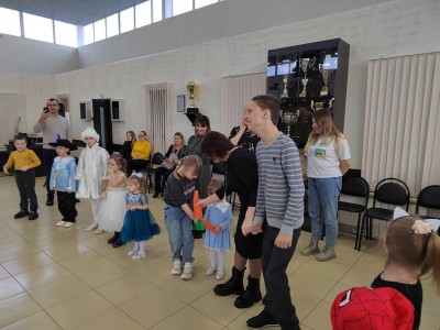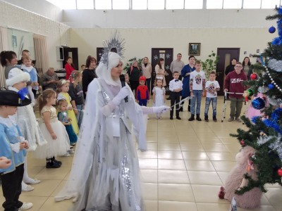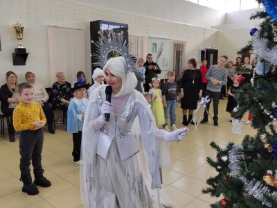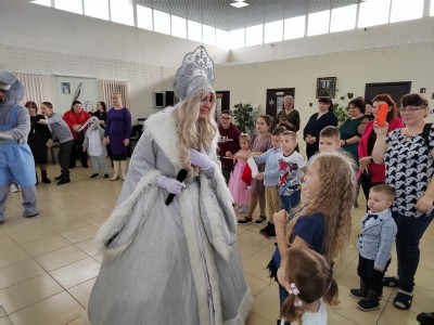 Новогоднее представление завершилось сладкими подарками от Деда Мороза.