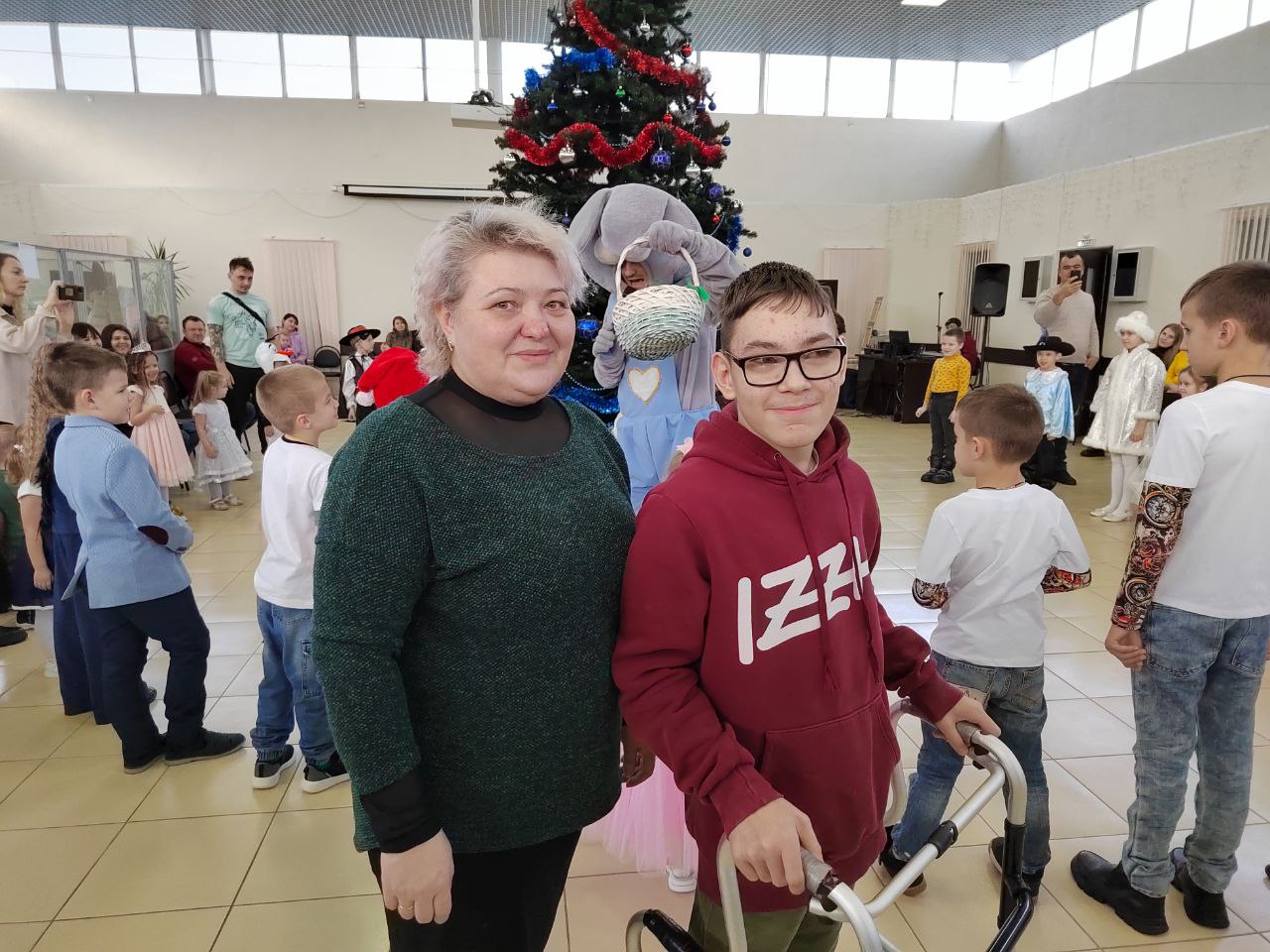 В просторном зале собрались подопечные «Каравана добрых дел». На ёлку пришёл и малыш Джамиль, которому Дед Мороз два года назад подарил ухо. Мальчик родился с одним органом слуха. Чтобы восстановить второй, потребовалась сложная операция, провести которую помог «Караван добрых дел». Врачи восстановили не только ухо, но и вернули слух.
