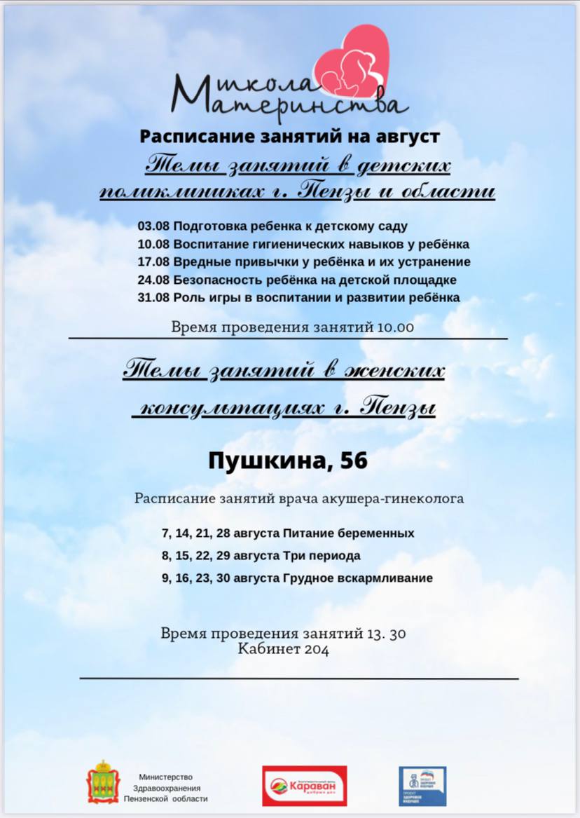 Пензенских родителей приглашают в Школу материнства, отделения которой работают в детских поликлиниках и женских консультациях. О том, какие занятия пройдут в августе, рассказала депутат Заксобрания, руководитель благотворительного фонда «Караван добрых дел» Ольга Чистякова: