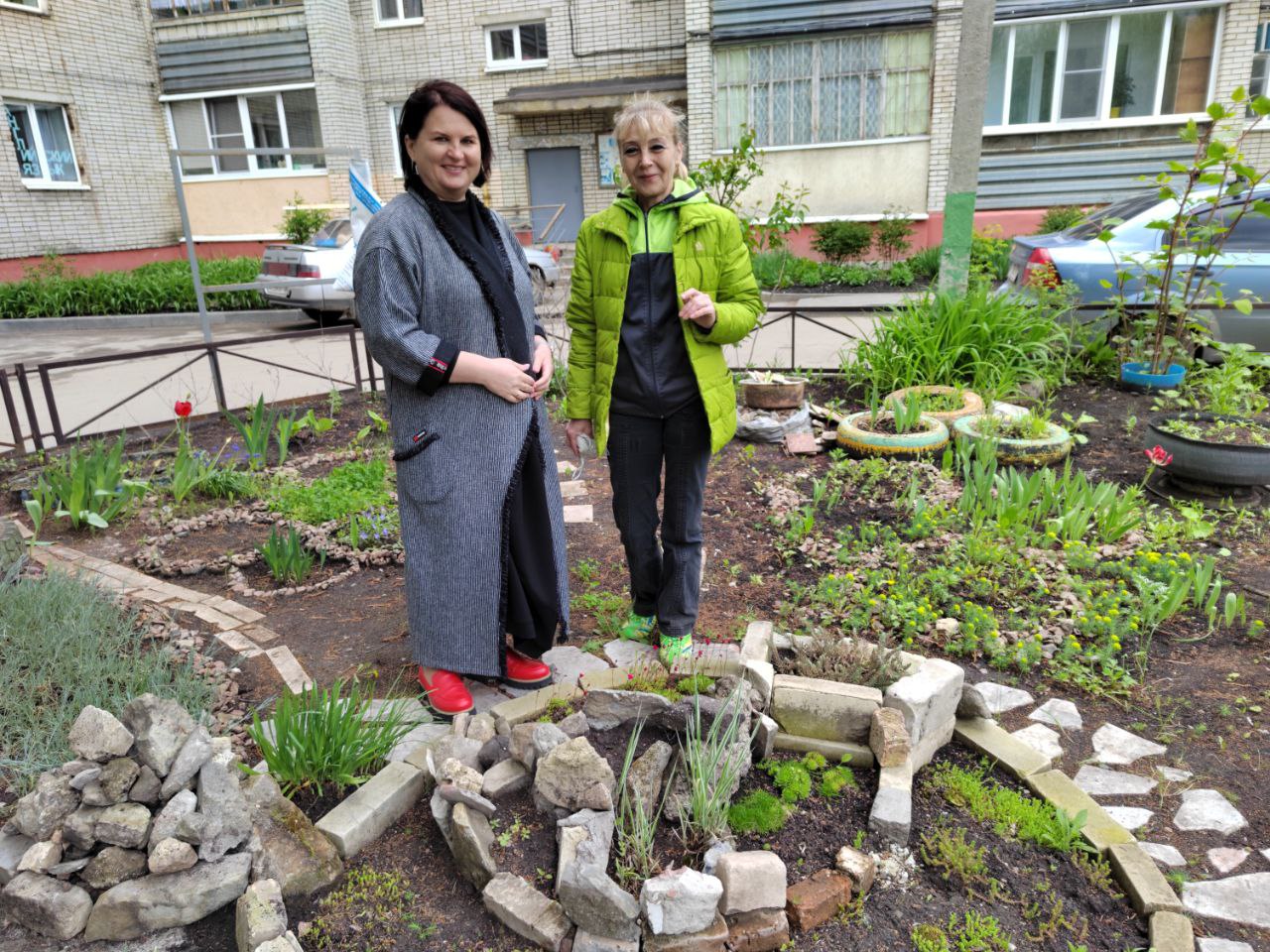 Людмила Михайловна Тихомирова и Инга Владимировна Володина ухаживают за двором на Терешковой, 6 уже больше 12 лет. За это время удалось вырастить целую аллею из каштанов, кленов, рябин, сирени, физалиса, калин, берез. Нижние ярусы украшает шиповник нескольких видов и многочисленные цветы.