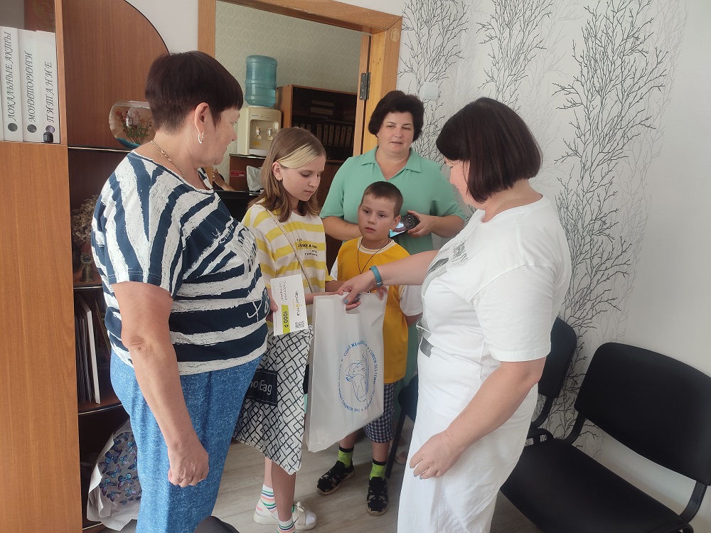 Получившие школьные наборы дети поблагодарили Ольгу Чистякову, а также рассказали ей, каким школьным предметам отдают предпочтение.