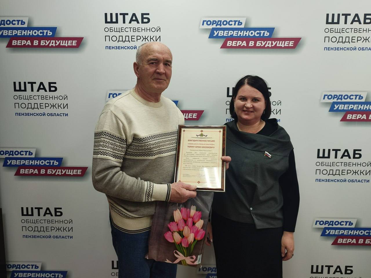По завершении приема она наградила жителя избирательного округа №2 Юрия Николаевича Тюрина, вручив ему Благодарственное письмо Заксобрания за добросовестный труд и активную гражданскую позицию.