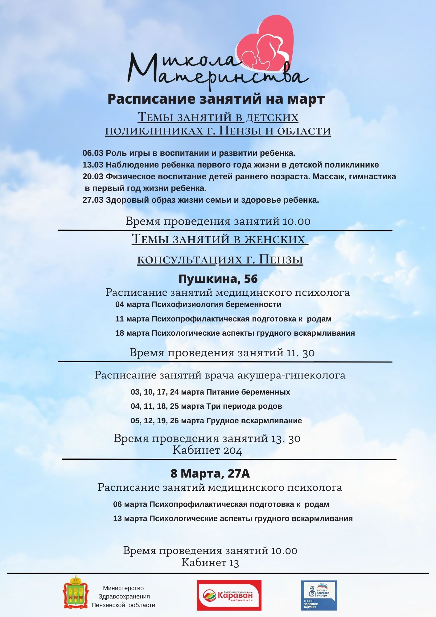 В женской консультации на ул. 8 Марта, 27А медицинский психолог проведет занятия 6 и 13 марта по темам подготовки к родам и психологическим аспектам грудного вскармливания.