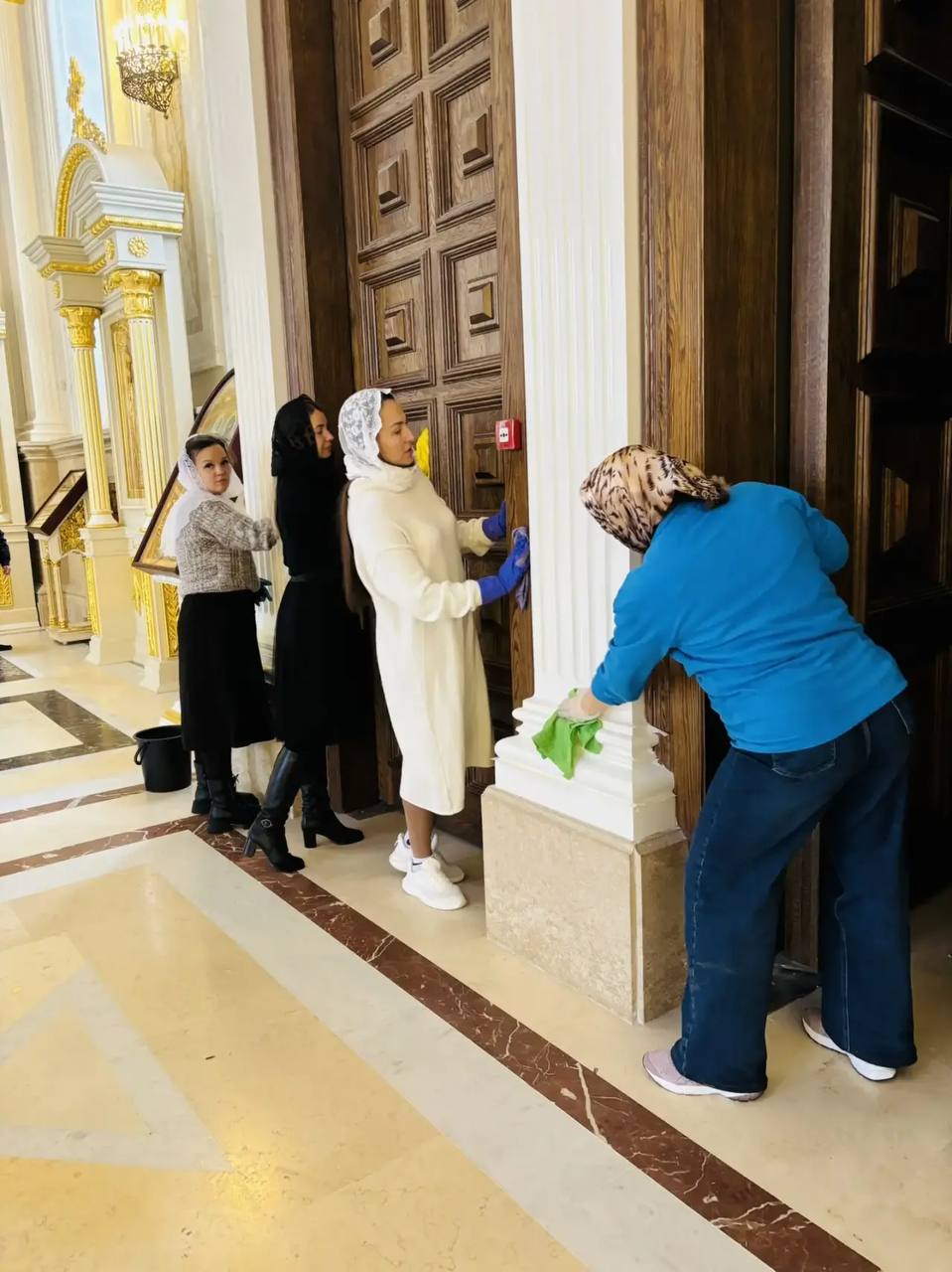 По ее словам, 4 января активистки СЖР пришли в храм, чтобы подготовить его к праздничному богослужению. Женщины вымыли окна и подоконники, протерли иконостас, иконы, подсвечники, двери и стены. Также они пропылесосили все ковровые дорожки.