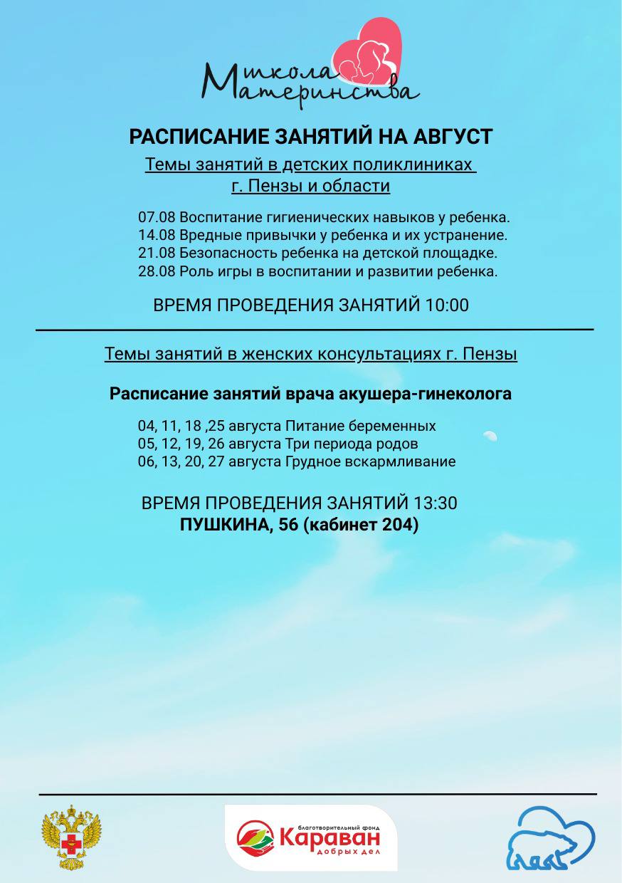 В августе в Пензенской области продолжит работу проект «Школа материнства». Об этом сообщила депутат областного Законодательного собрания и руководитель благотворительного фонда «Караван добрых дел» Ольга Чистякова. Занятия, как и прежде, будут проходить в детских поликлиниках и женских консультациях, где будущие и молодые родители смогут получить важные знания и поддержку специалистов.