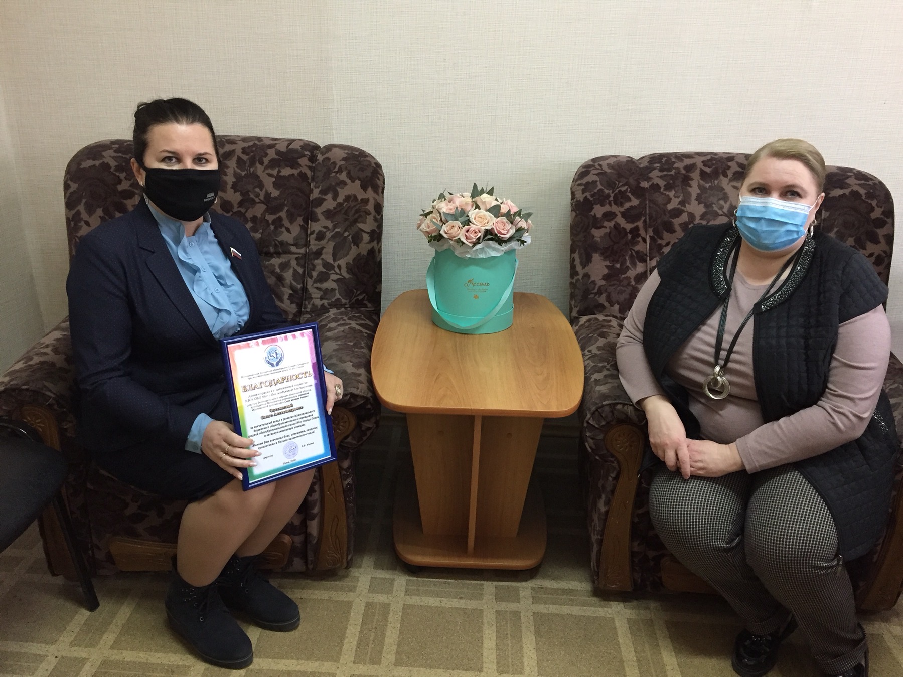 В благодарность за новые возможности для учеников инклюзивной школы Ольге Чистяковой вручили грамоту и памятный значок.