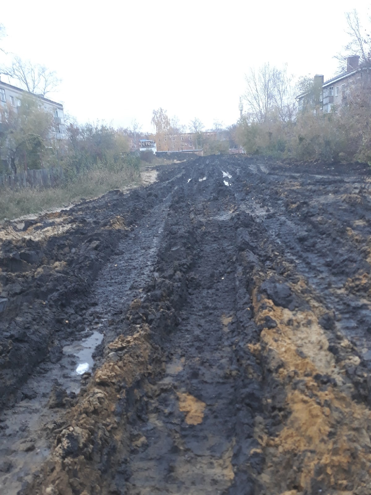 В качестве доказательств он опубликовал фото, на котором видно колею, по которой невозможно пройти не испачкавшись в грязи.