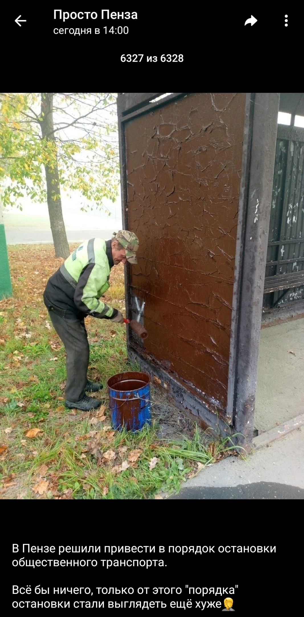 «В Пензе решили привести в порядок остановки общественного транспорта. Все бы ничего, только от этого «порядка» остановки стали выглядеть еще хуже», – отметил автор снимка.