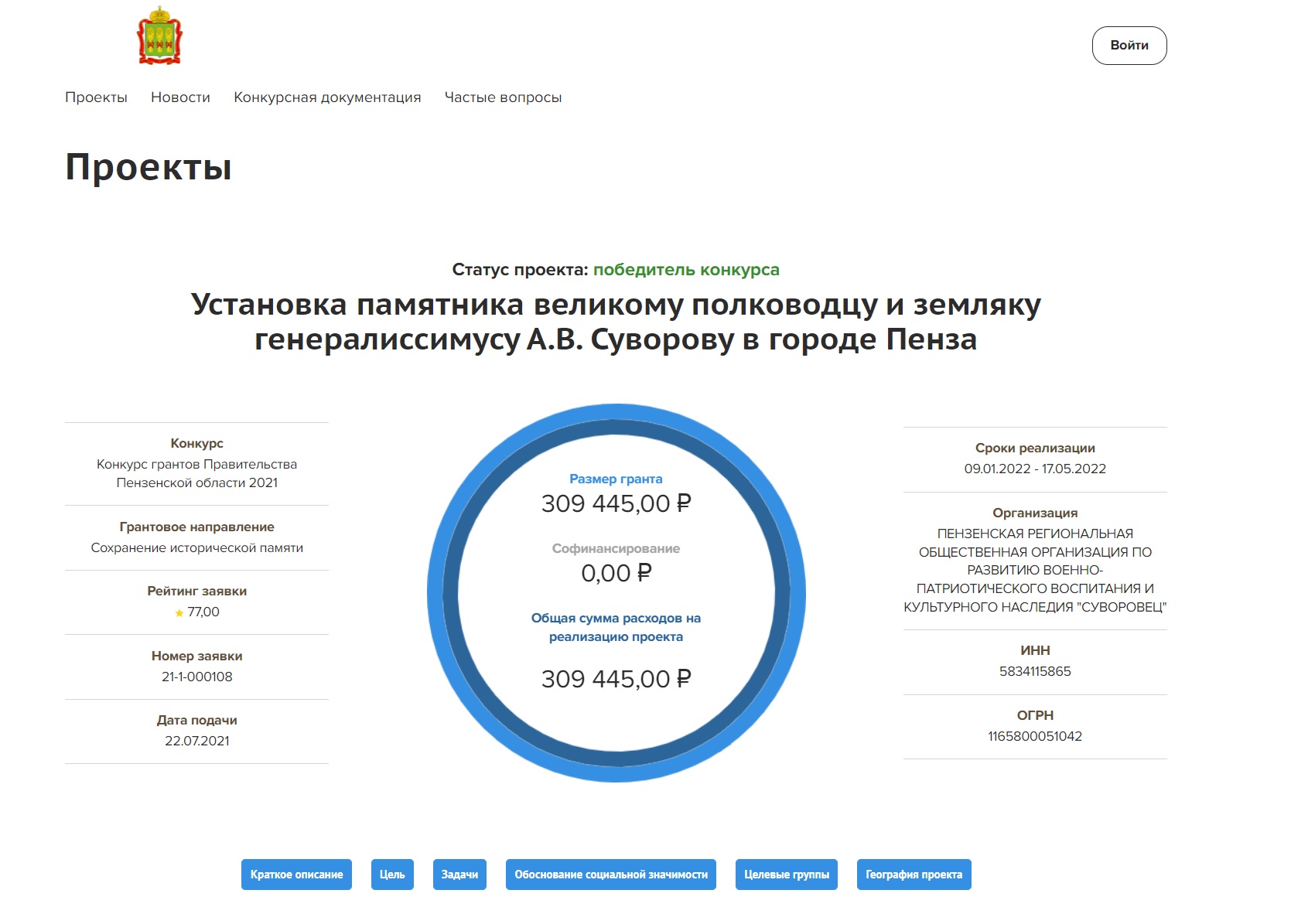 Фото: скриншот сайта https://grants.pnzreg.ru/public/application/item?id=ae07cbf9-69ab-49a6-8d40-96993d61d12a
