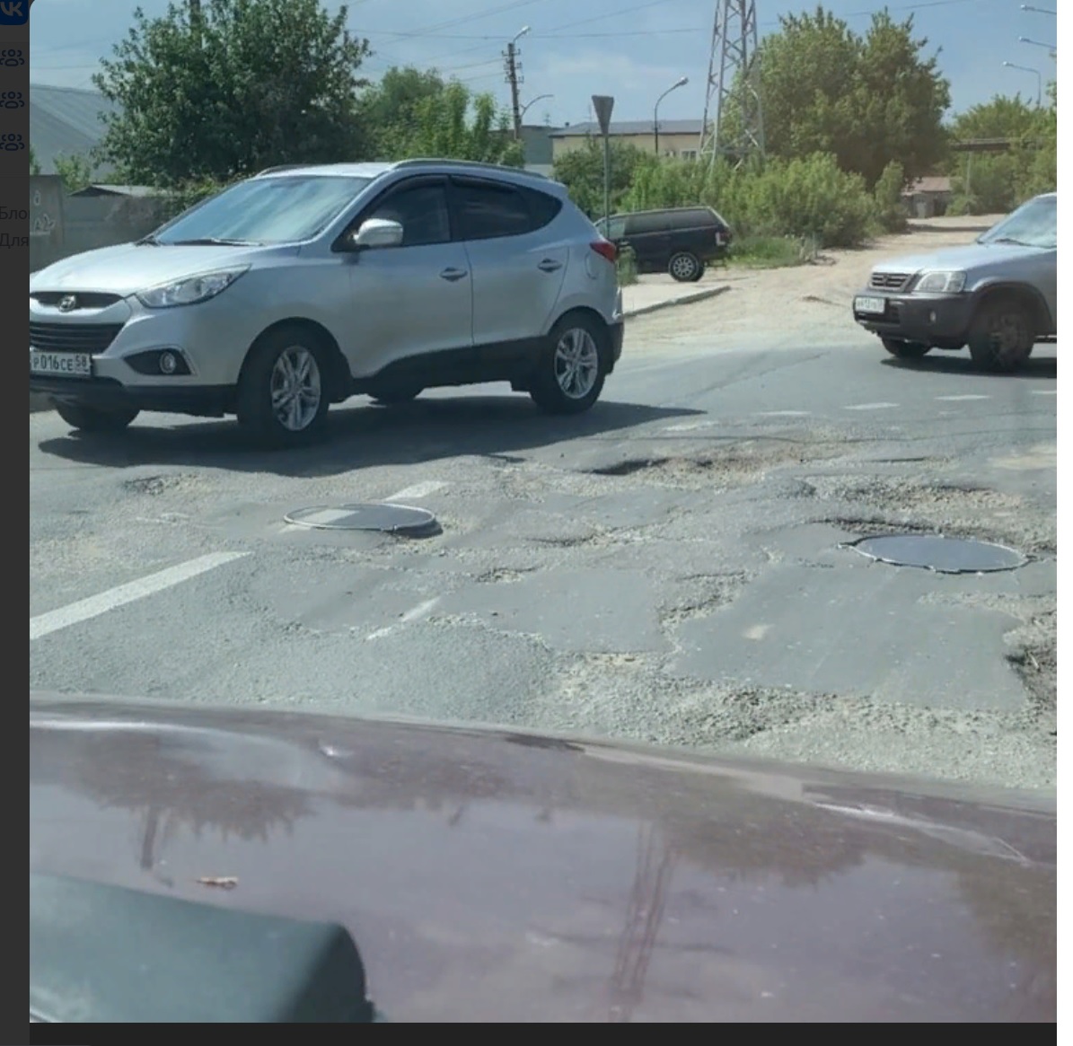В качестве доказательств мужчина опубликовал снимок проезжей части, на которой видны не только ямы, но и торчащий канализационный люк.