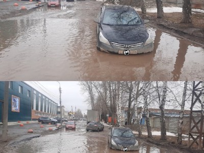 К сообщению он прикрепил фотографию, на которой изображен автомобиль, потонувший в грязной глубокой луже. Позже в группе появился пост с фото от другого пензенца.