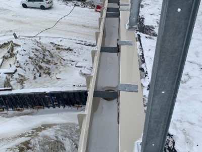 На сегодняшний день специалисты занимаются устройством наружного электроосвещения, перильного и барьерного ограждения, шумозащитных экранов. Кроме того, они обустраивают водоотводные лотки путепровода.