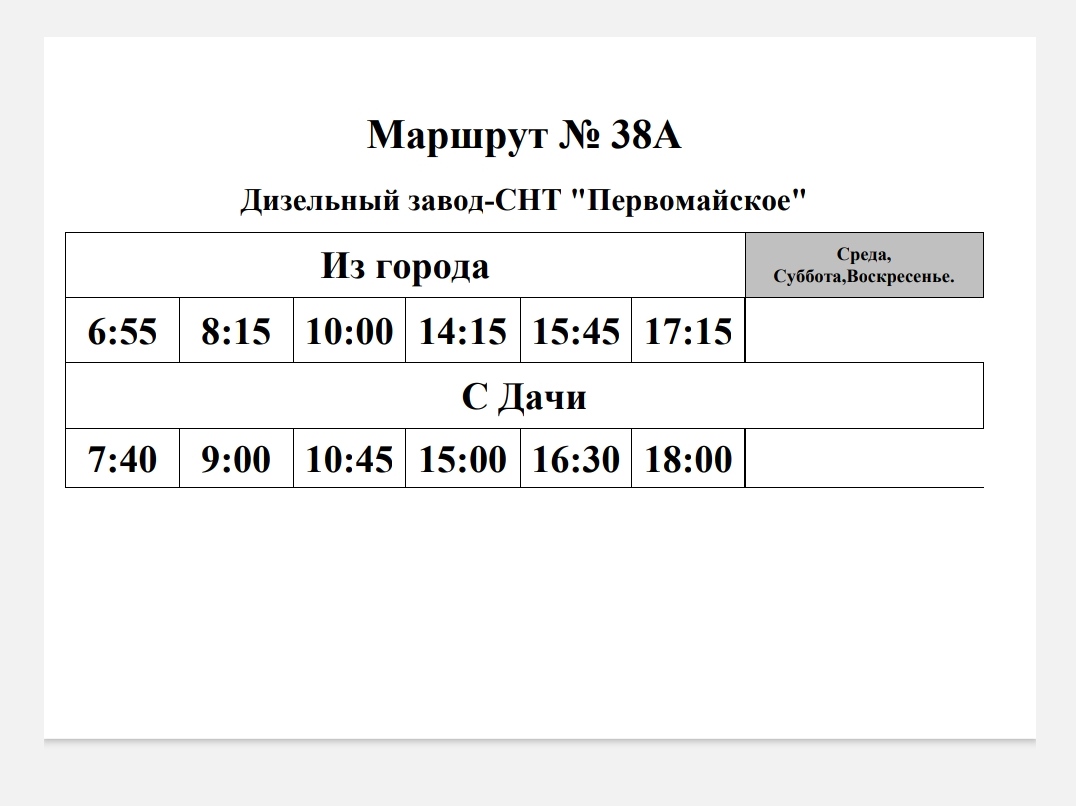4) Маршрут №38А (Дизельный завод - СНТ "Первомайское")