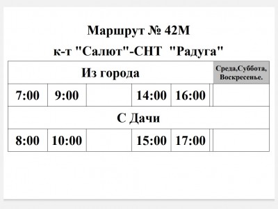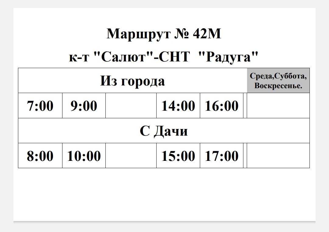 9) Маршрут №42 М (к-т "Салют" - СНТ "Радуга")