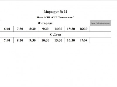 1) Маршрут №32 (Пенза 1 - СНТ "Строитель" - СНТ "Росинка+")