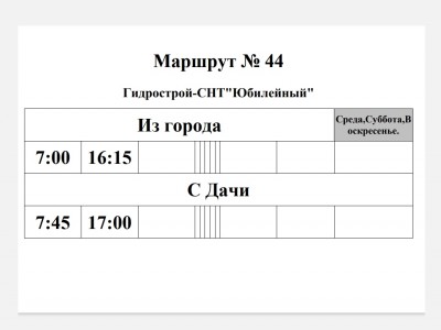 10) Маршрут № 44 (Гидрострой - СНТ "Юбилейное")